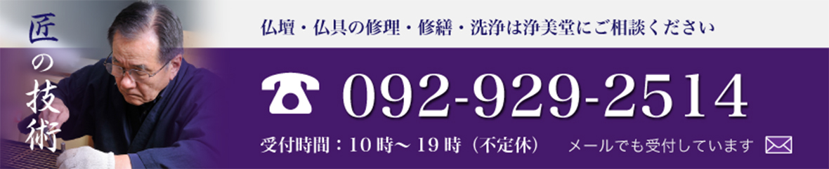 仏像や位牌、扉のサン、細かい細工がしてあるところは、先の柔らかい毛筆や麺棒を使って払います。